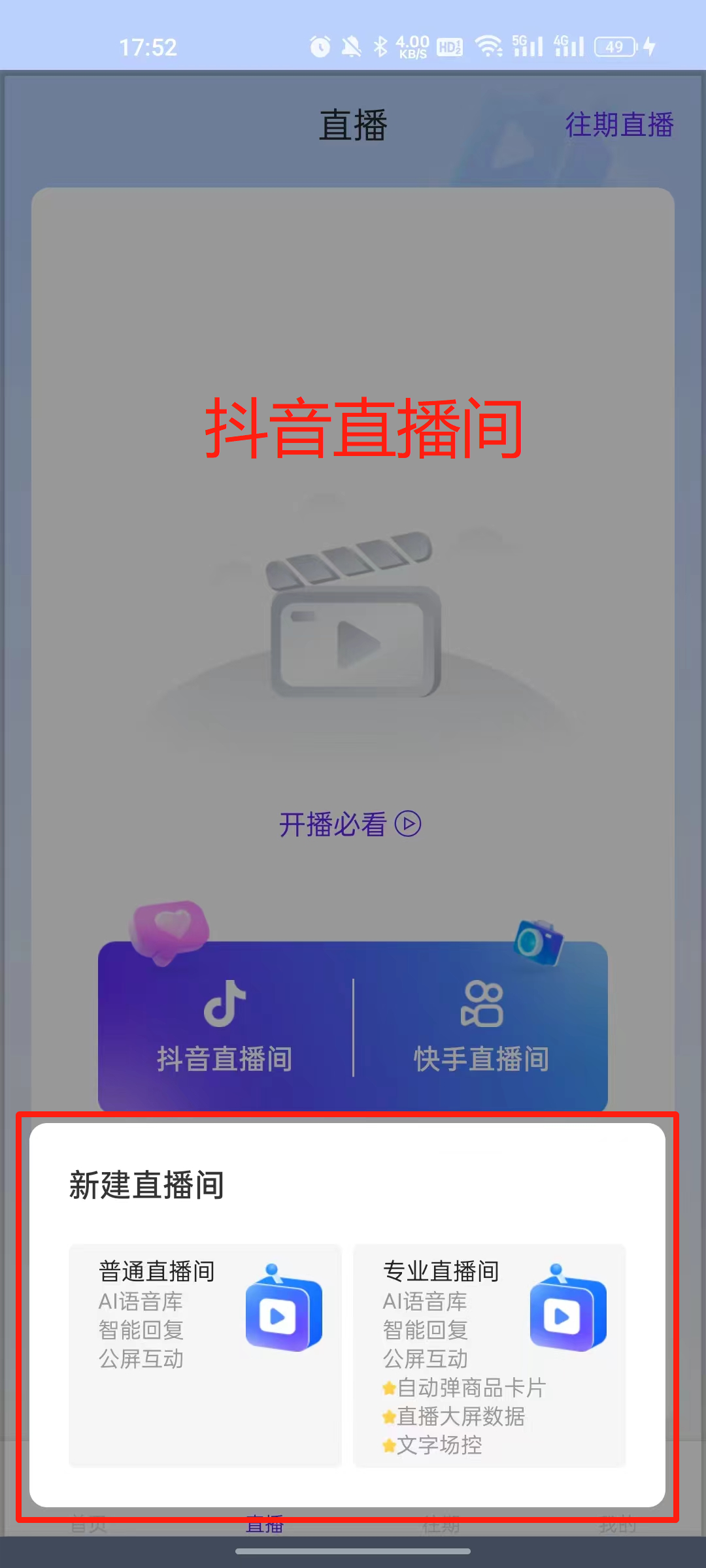 ●用抖音开播可以选择【普通直播间】或【专业直播间】,适用小白和专业运营者等多种群体,根据需要自行选择。
