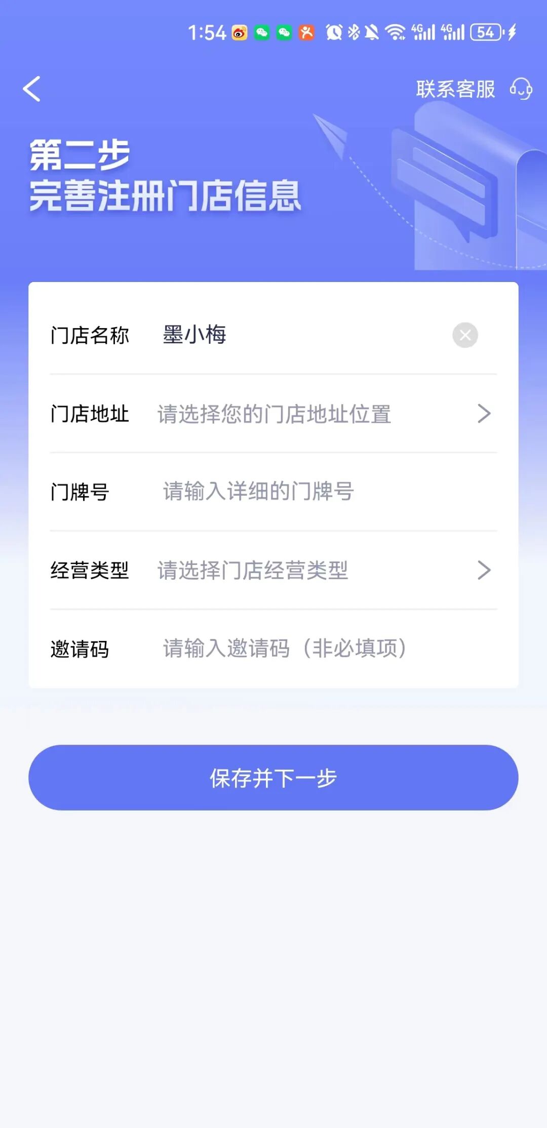 门店名称、地址、门牌号、经营类型等内容需要全部完善