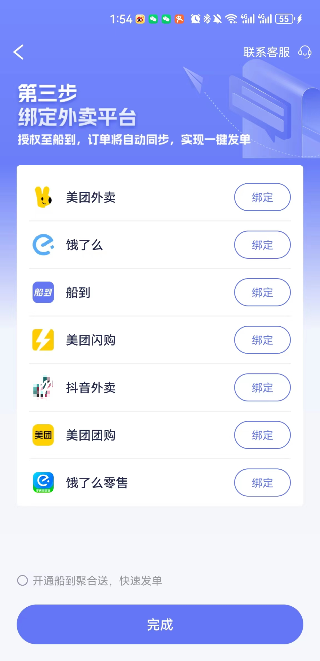 船到聚合配送平台,商家配送解决方案,通过聚合运力的形式,实现一个系统管理多个平台,同时还接入了常见的订单平台,让商家从接单到发单一站式完成。