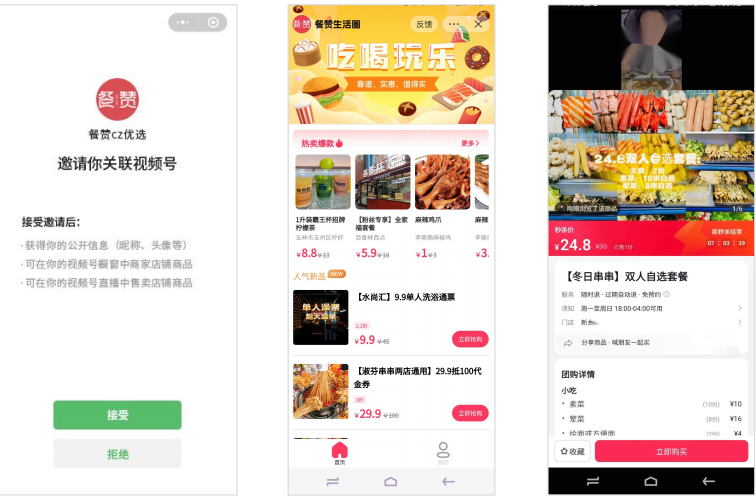 为了降低视频号团购的门槛,破解开发、主播供给和招商难题,餐赞生活圈通过视频号短视频和直播挂载团购方式,解决本地生活私域直接转化的问题,实现交易闭环。