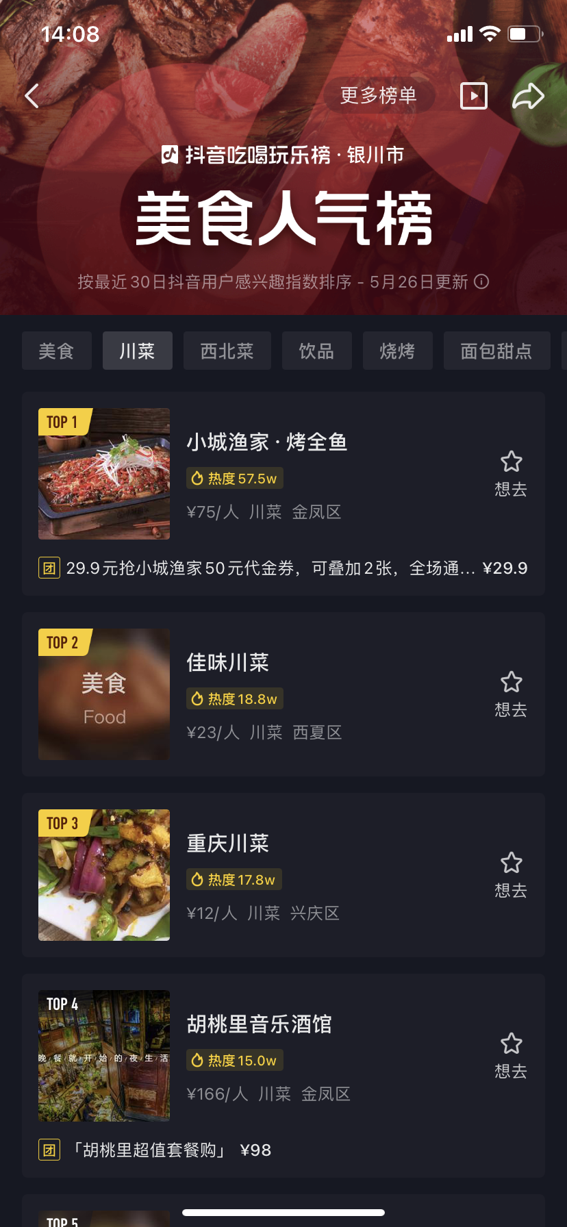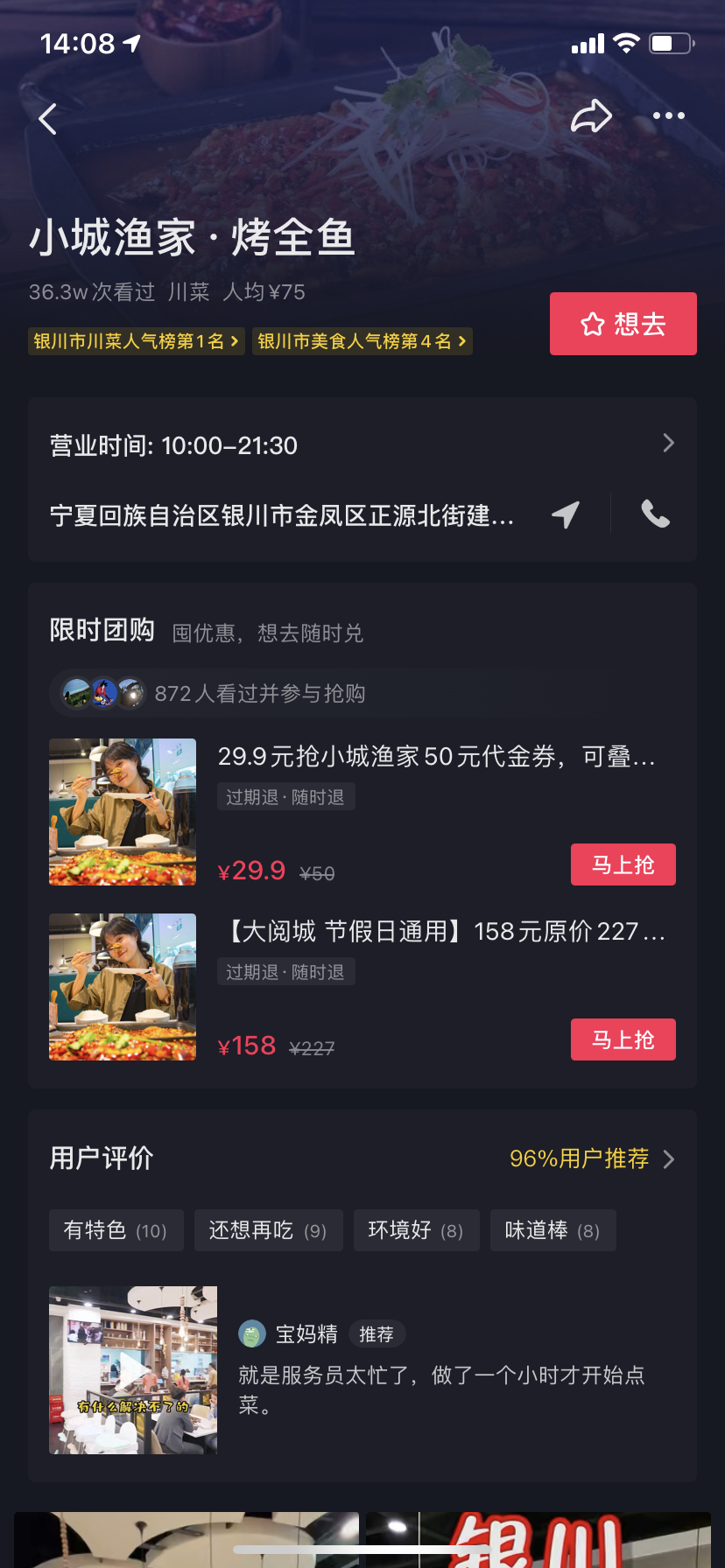 “宁夏优选”便是借助小魔推,通过提高综合指数,帮助当地的一个商家“小城渔家·烤全鱼”登上了城市川菜榜的第一名!