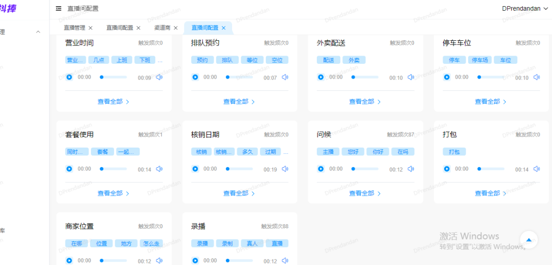 除了自动播放的直播话术,合作伙伴针对关键词进行智能回复的话术内容也持续进行了完善,更多的去设置消费者关心的问题,比如:营业时间、套餐使用、核销日期、是否能打包等问题。