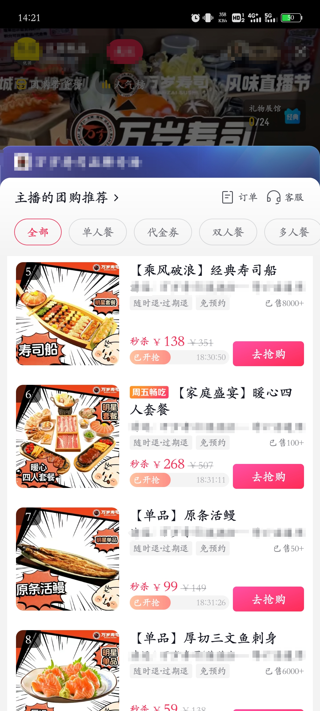 主要的组品原则在于引流款和利润款进行搭配售卖,比较划算的品:秒杀单品1元寿司;比较火爆的品:65代100元代金券等放在前面吸引消费者的眼球,从已售1w+、4000+的销量也可以看出这个组品策略极大的增加了用户购买的数量!