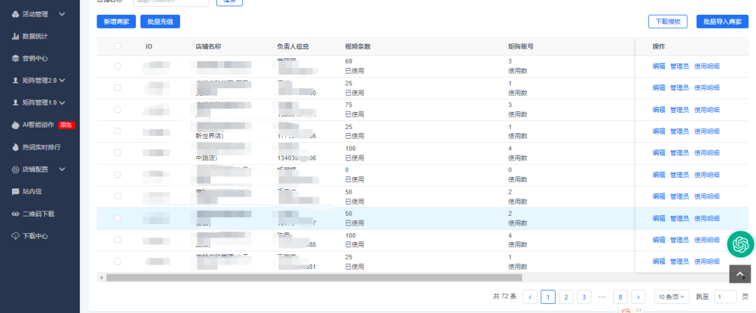 做推广期间,商家目前有72家门店在使用小魔推的连锁店模式,可以实现品牌门店联动,活动素材共享,不仅能保证活动的统一性和准确性,还能用低成本实现效果的最大化!