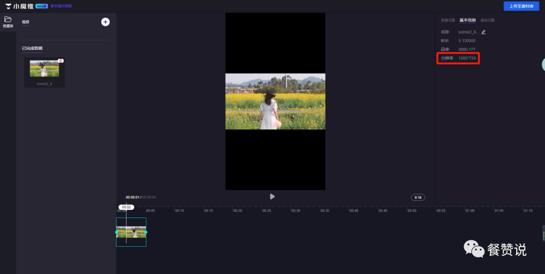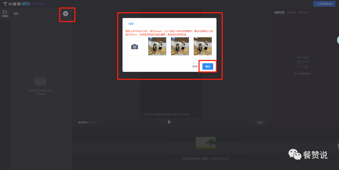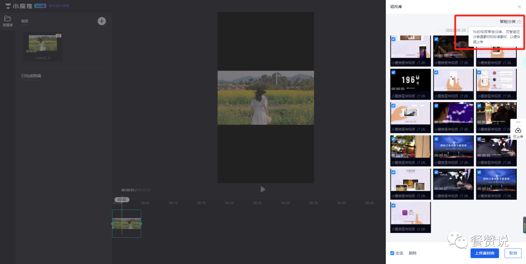 视频剪辑完成后,选中所需内容点击上传到素材库,就直接到达小魔推的素材库了。