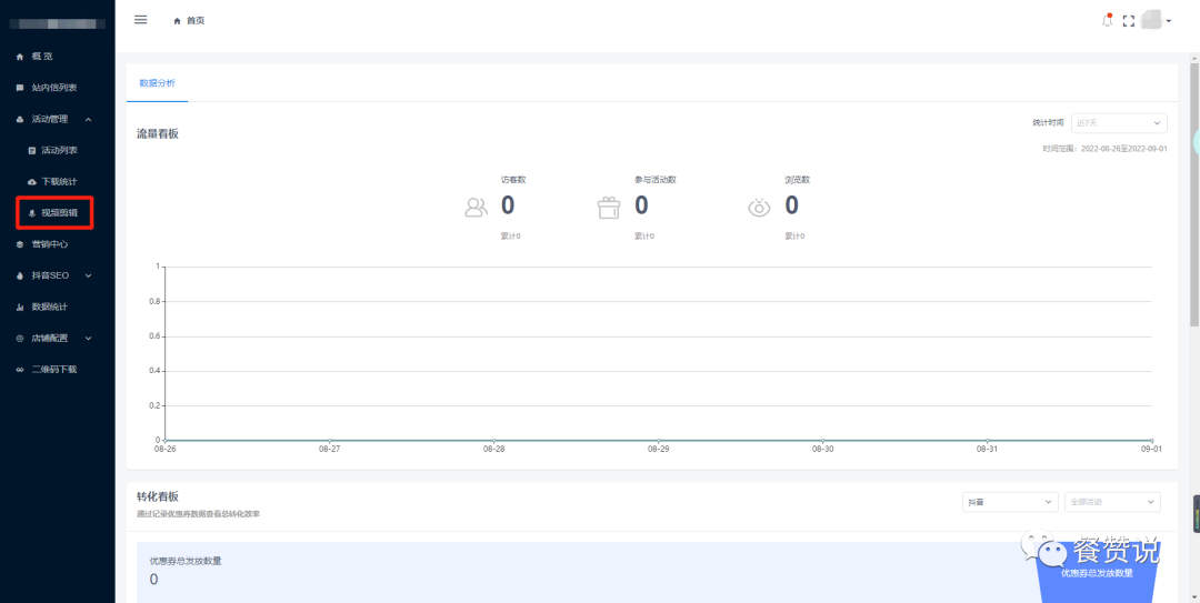 在商家管理里,【活动管理】-【视频剪辑】,打开视频剪辑操作页面。