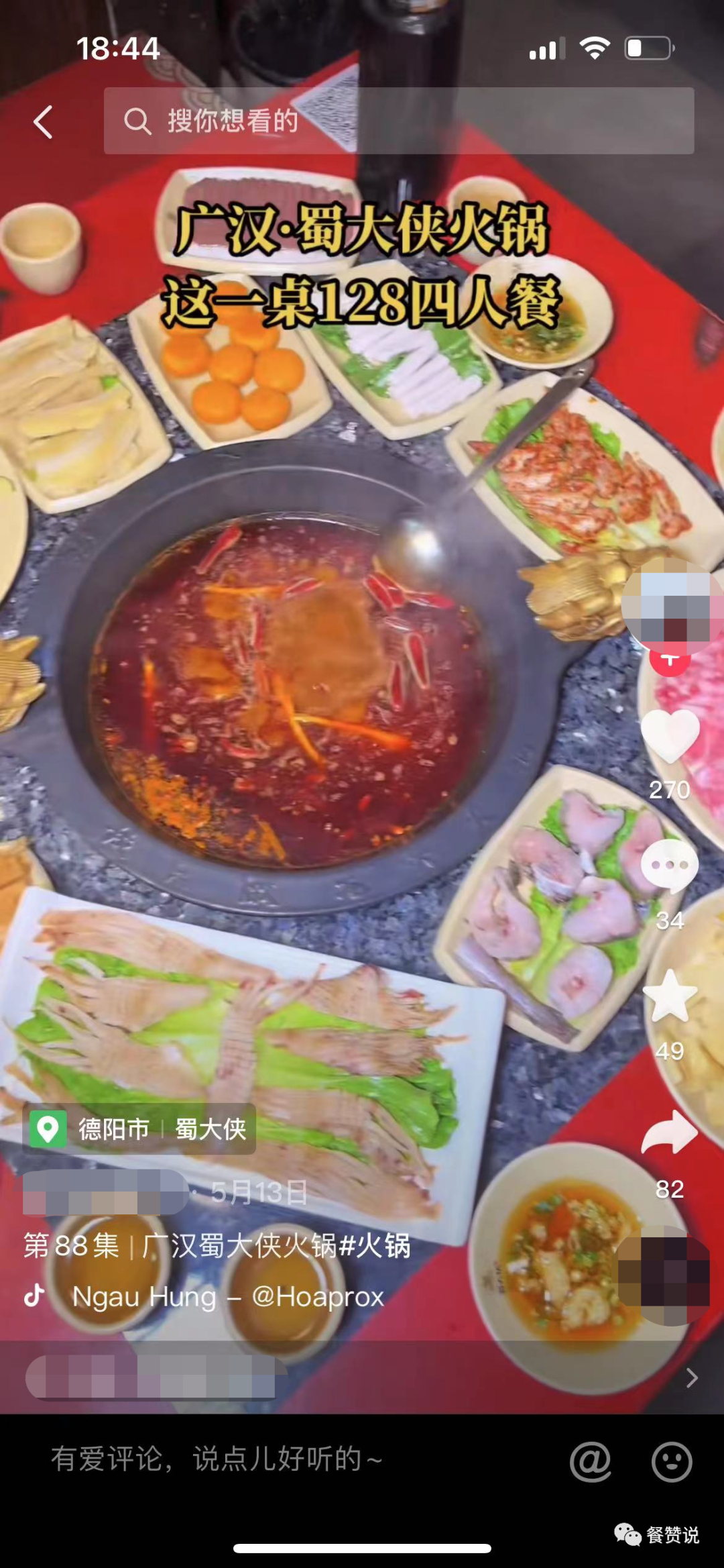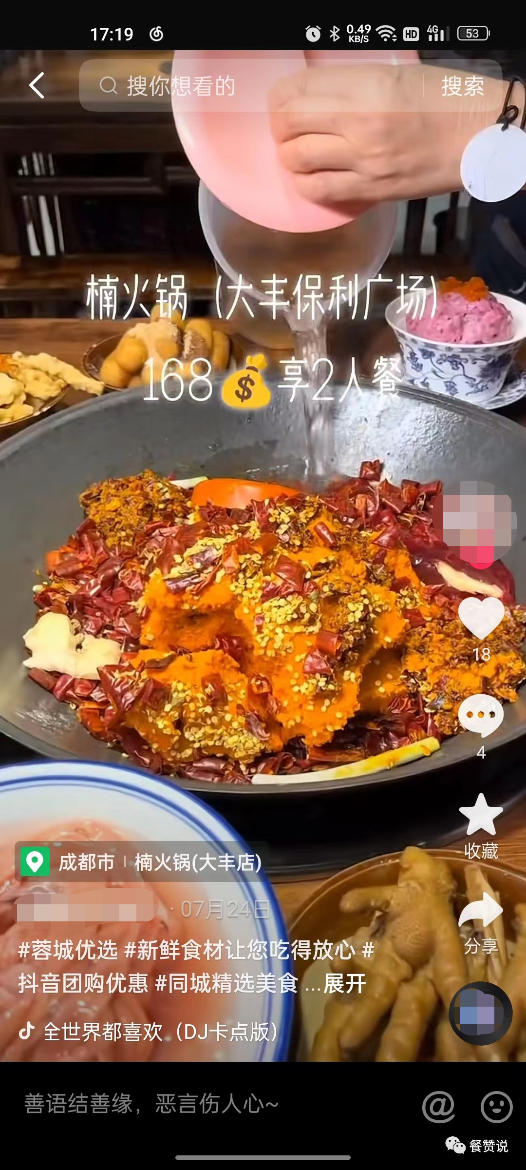 蓉城优选张总对于火锅爆品的打造主要都是通过短视频进行的转化,首先进行火锅品类的组品,再上架团购套餐,再由达人或者用户进行视频的宣传扩散。