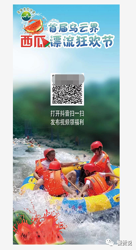 景区设置的活动名称为【首届乌云界西瓜漂流狂欢节】,在景区放置的有二维码海报,会有工作人员引导游客参与小魔推的扫码活动。