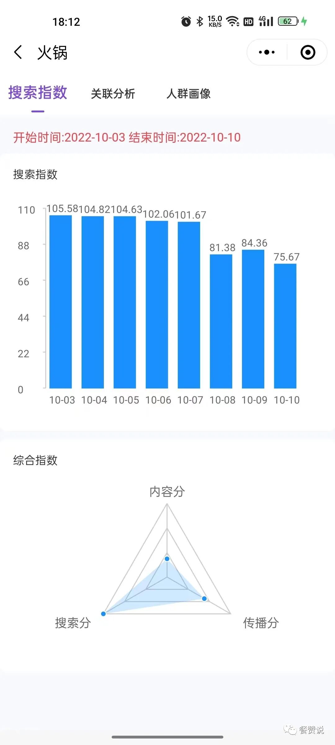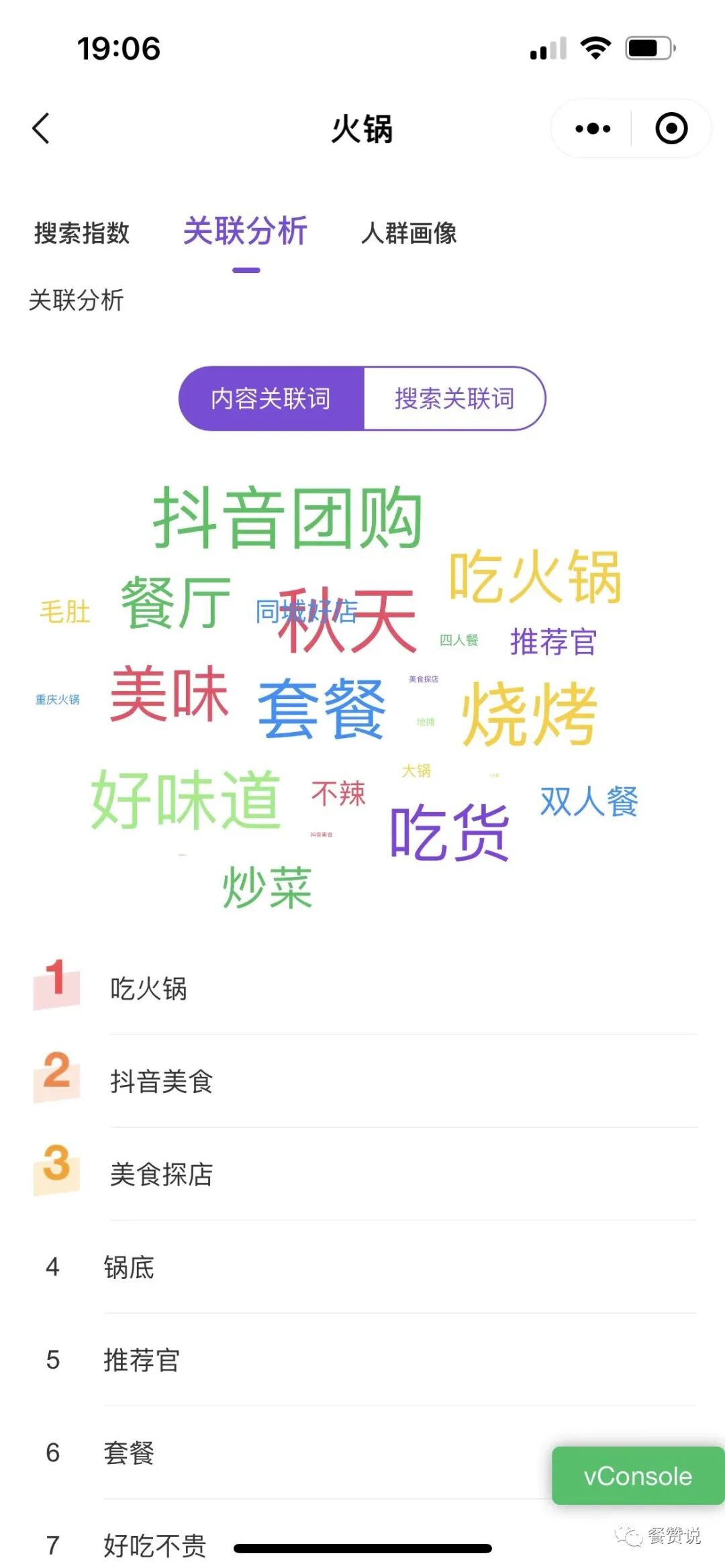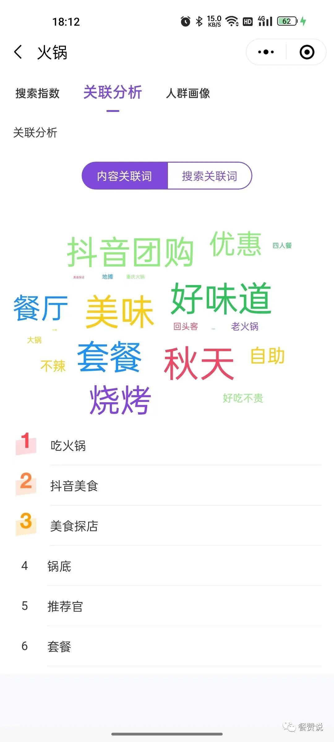根据这些指数,不仅可以选择直接搜索的高频关键词,还可加入关联的关键词,关键词的选择都可以参考数据分析的数据,热门关键词直接增加曝光。与“火锅”相关的,例如餐厅、吃货、锅底等等。