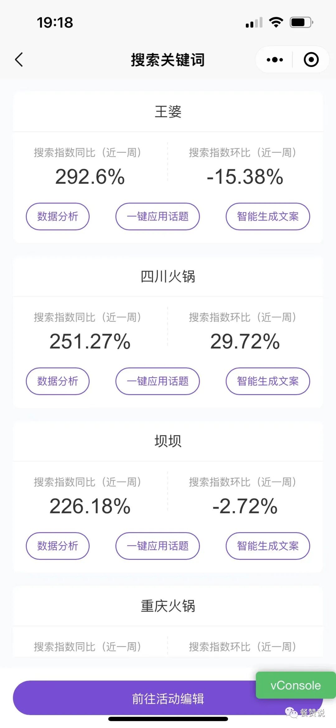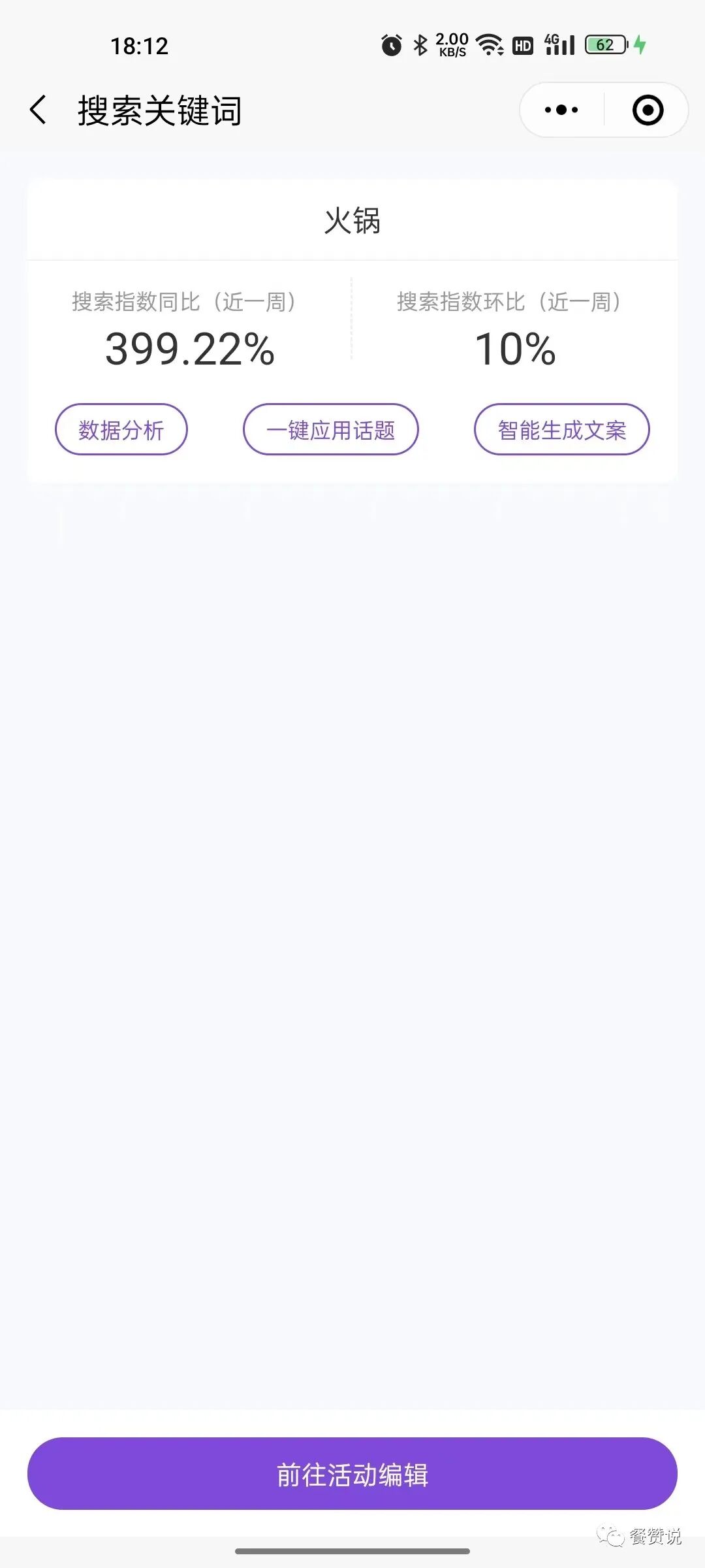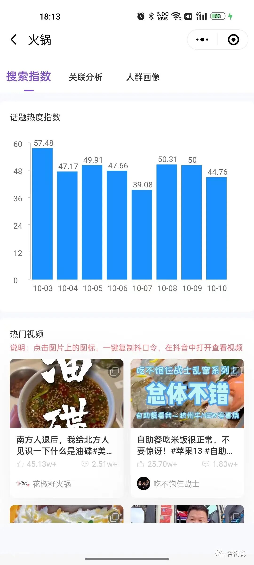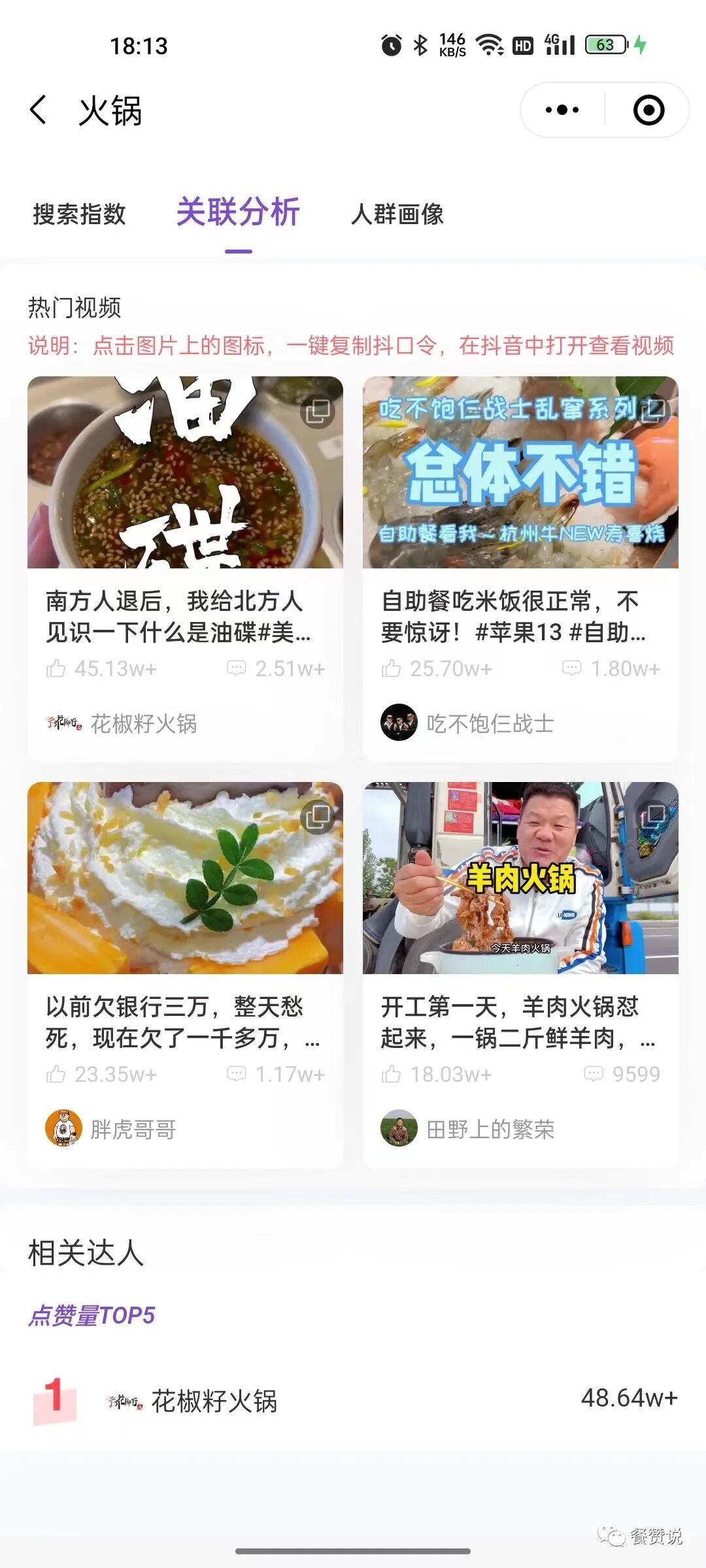 根据这些指数,不仅可以选择直接搜索的高频关键词,还可加入关联的关键词,关键词的选择都可以参考数据分析的数据,热门关键词直接增加曝光。与“火锅”相关的,例如餐厅、吃货、锅底等等。