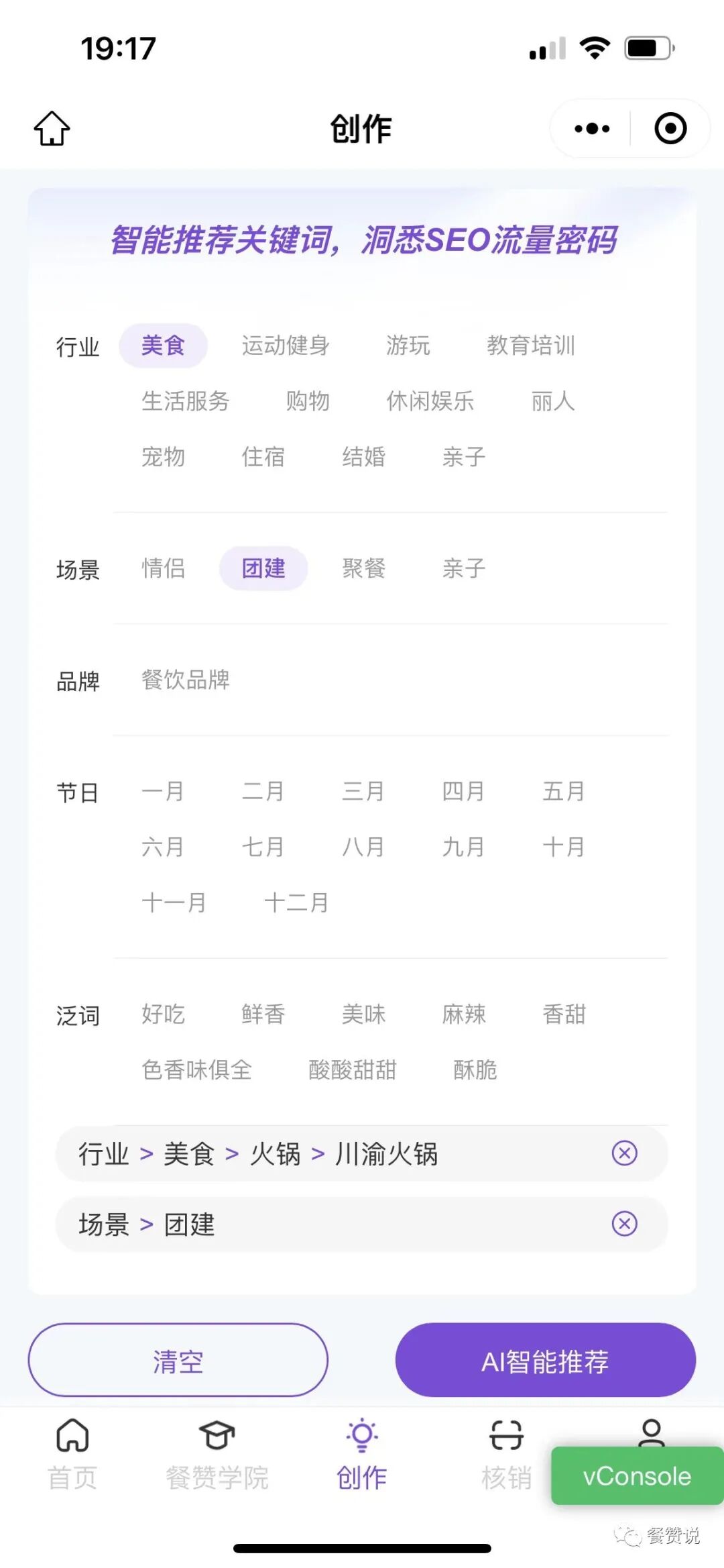 包括了行业/品类,场景,品牌,节日,泛词等,根据自己的营销需求进行勾选,即可进行智能推荐。