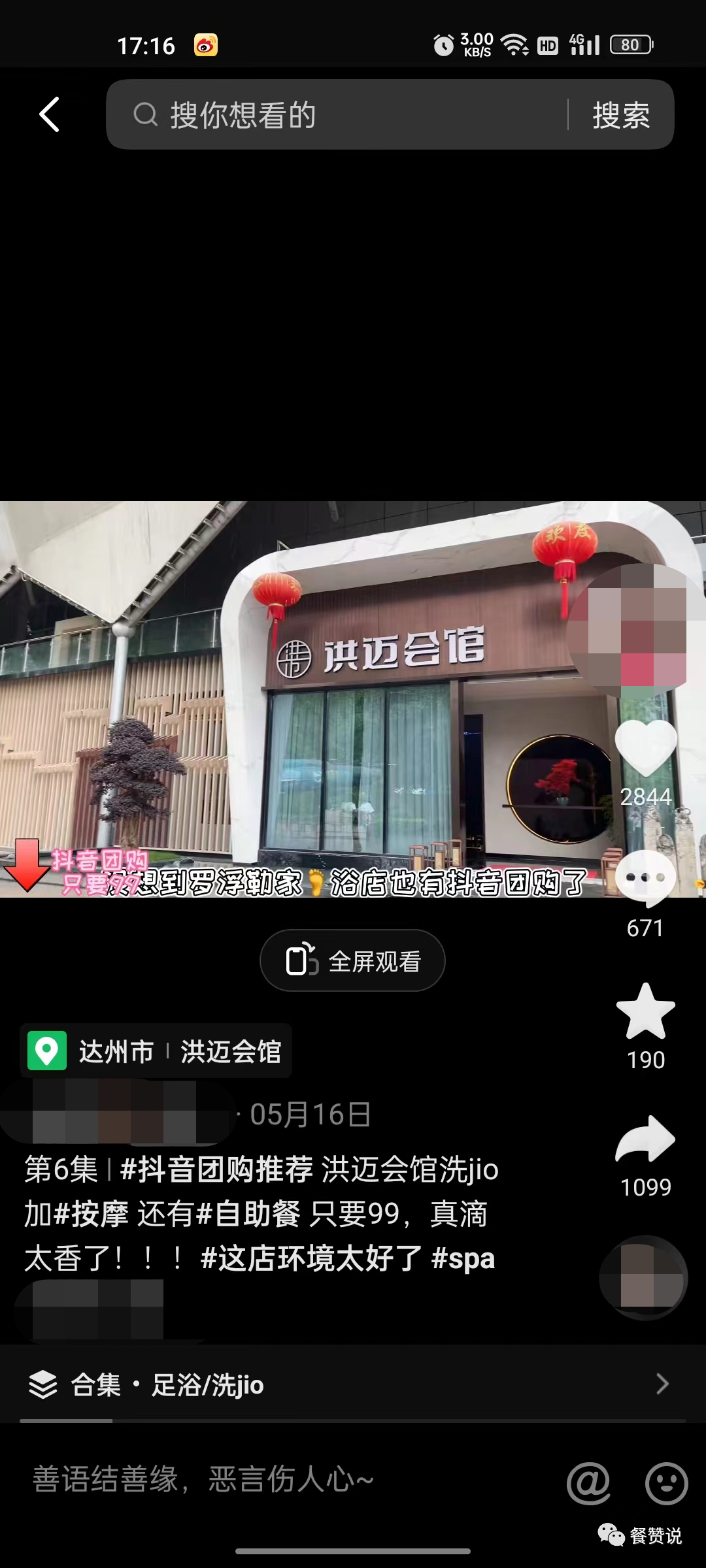 商家是重庆的一家老字号足浴按摩店,在当地已有4家分店,本案例为又开设的一家新店在短视频平台上做的团购服务所取得的效果。