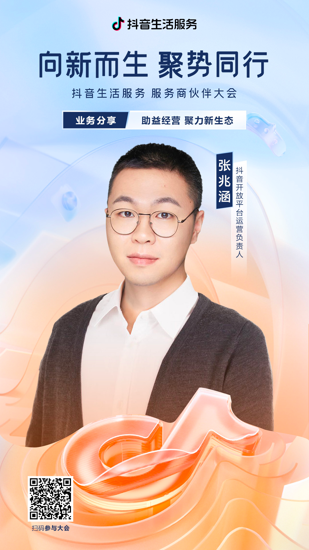 此次服务商伙伴大会邀请到的业务板块分享人是抖音生活服务业务副总裁李炜、抖音生活服务服务商管理部负责人姜亮、抖音开放平台运营负责人张兆涵、抖音生活服务服务商产品负责人李大鹏、巨量引擎本地消费行业运营负责人皮卡尔。