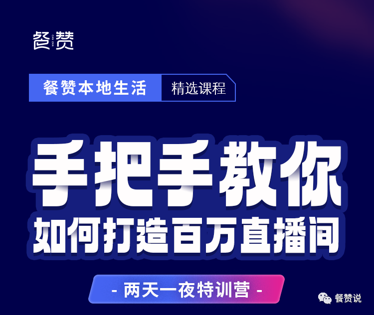 那么为了集中提升大家的专项能力,餐赞磐石计划特打造了精选课程《手把手教你如何打造百万直播间》,并组织了线下【两天一夜特训营】,用两天一夜的线下课程,对有学习需求的合作伙伴进行拔尖培训。