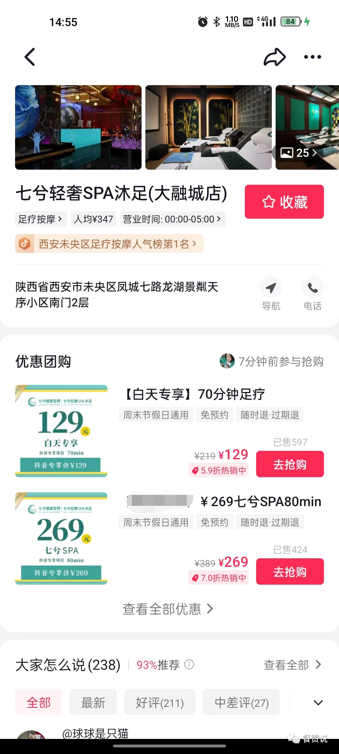本次这个商家叫做【七兮轻奢SPA沐足】,是一个连锁品牌,目前有三个店都在使用小魔推做营销推广活动,大融城这家店是第一个开始做活动的门店。