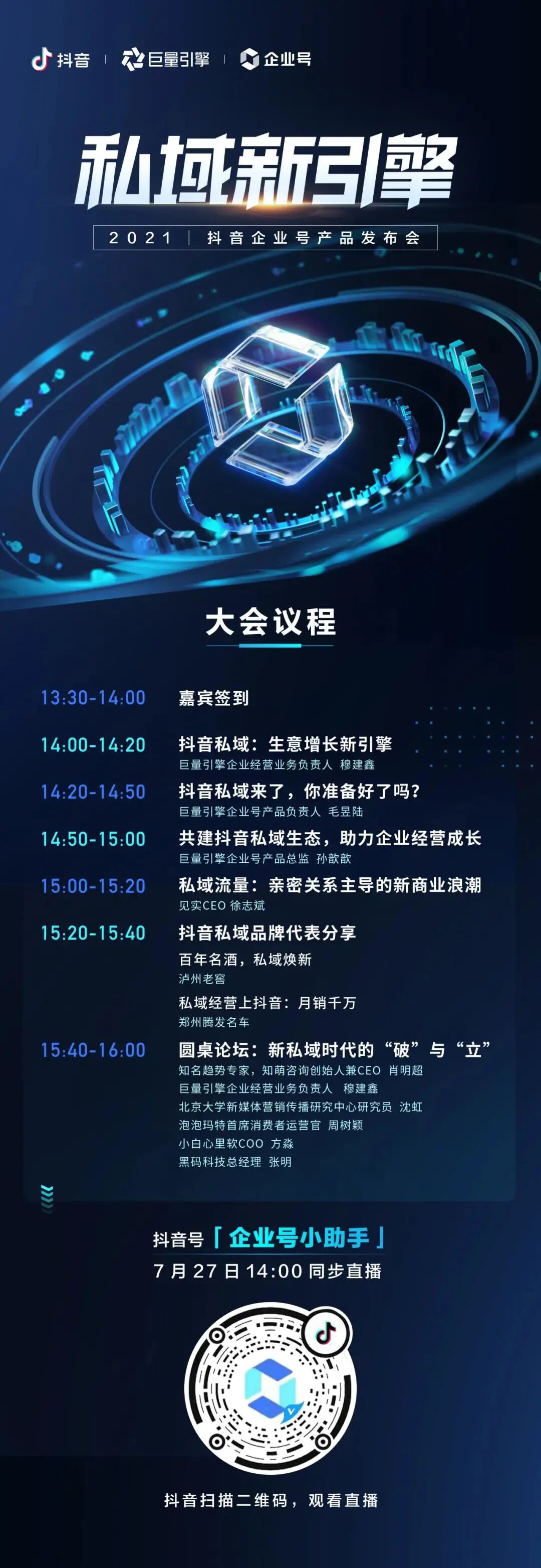 而7月27日(明天),“私域新引擎·2021抖音企业号产品发布会”将正式揭幕,在“私域”的问题下,用抖音企业号的2.0版,给出一份属于“抖音私域”的回答。