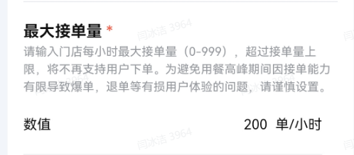 平台支持设置最大接单量和预约下单时间,商家可根据一天的订单承载量,出餐时效等,来设置每天最多可接多少单,以及通过预约下单时间,给商家足够的制作时间,避免出现接单过量导致的客户投诉问题,提高商家经营信誉和分数。