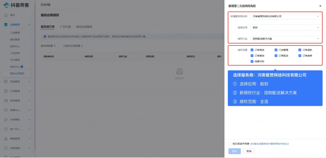 商家处理团购配送订单时,选择使用船到进行配送服务,可免除履约服务费。