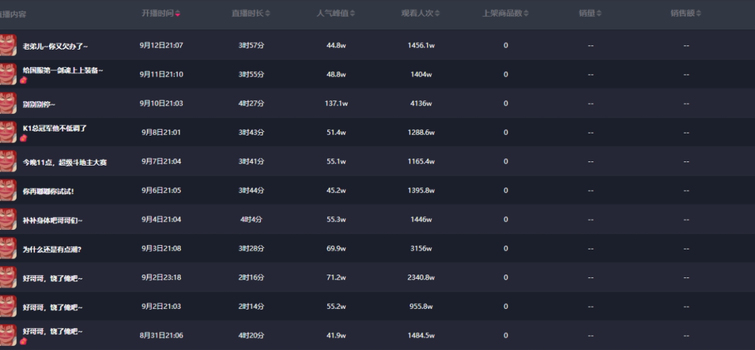 而最近1-2个月的时间,旭旭宝宝的流量变成了人气峰值在10-15万左右,一场直播,观看人次为400万左右。