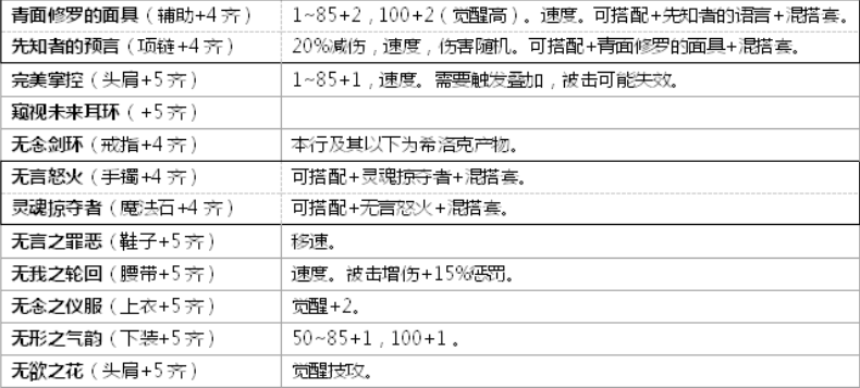【“3332”搭配】女漫游整体技能更偏向于爆发,因此多数情况下散搭整体装备实战表现优于“533”装备具体可参照下表,取自@谐音酱