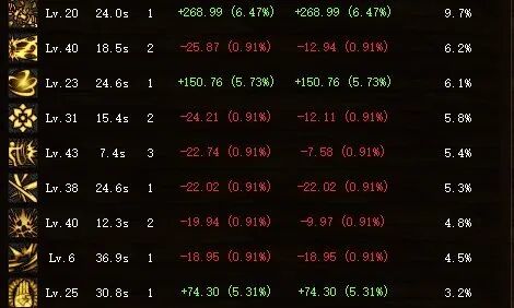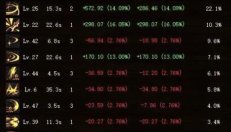 结果很明显,双绝和小技能有2-3%的降低,换来的是70-80三个技能13%左右的提升。