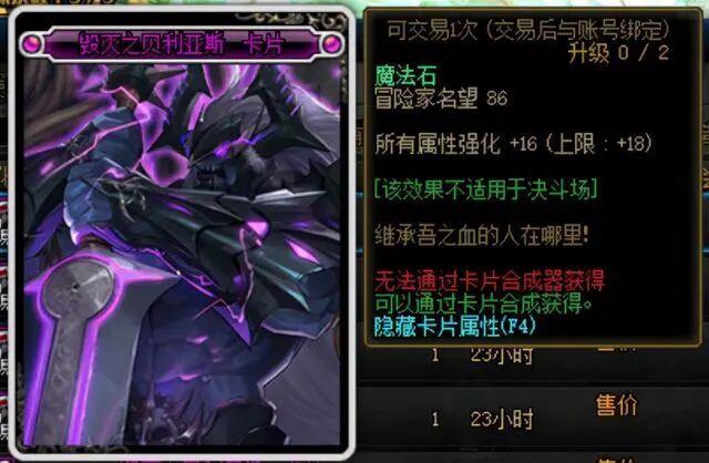 魔法石可使用毁灭之贝利亚斯卡片,笔者所在大区在120W金币左右,基本上搬砖一天就能回本。