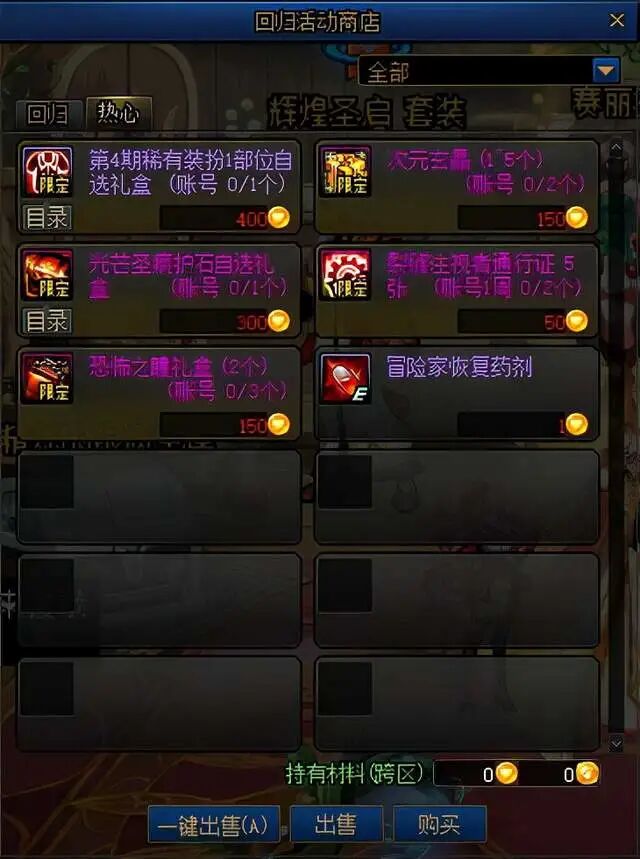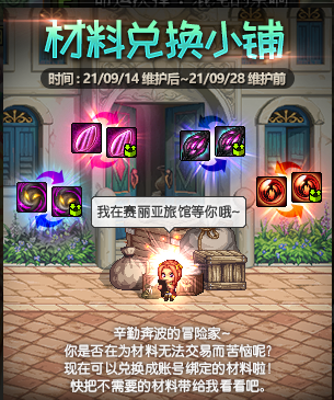 有的小伙伴就会问了,MD材料都是一样的比例,我换个毛线啊。是的没错,比例是一样的,但是我们可以利用把号上多余的无法交易的材料通过上面的商店换成账号绑定的,然后不就可以给需要的角色上了嘛。这样看来,这个活动还算有点作用,鼓励玩小号。