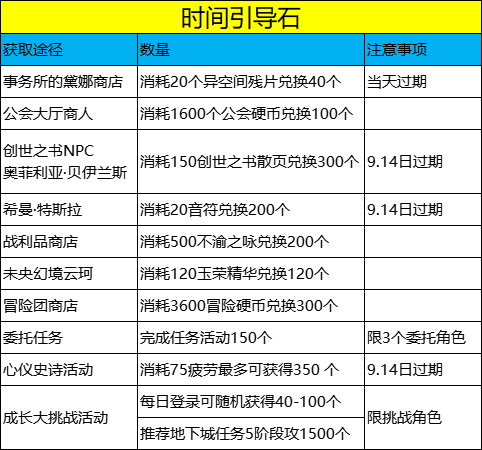 入场新深渊需消耗的27个时间引导石,笔者将当前时间引导石的获取途径整理了一个表格给大家。