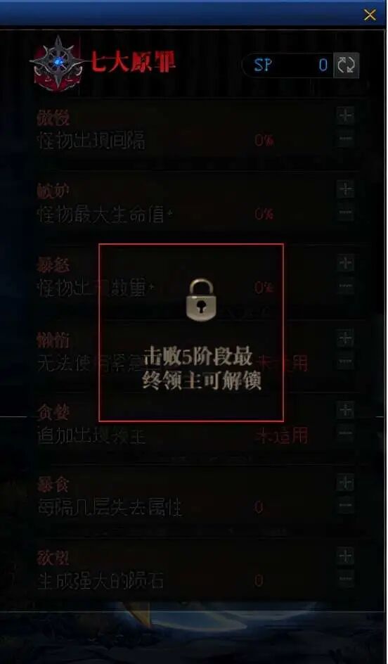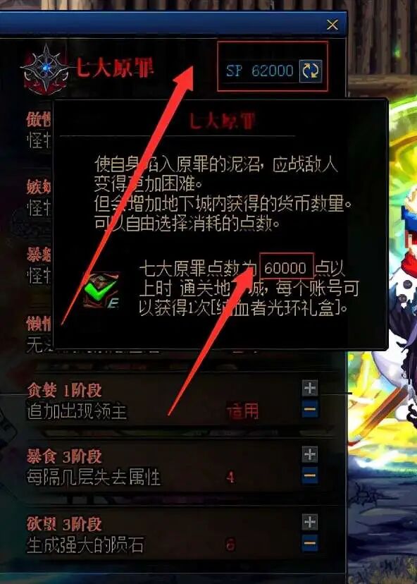 2、难度加点。在满足七大原罪解锁条件后,还要满足6万点以上的难度加点。
