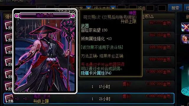 左槽的三攻附魔可以选择[再战魔界]里的宝珠,也可以去拍卖行购买:纯血者德斯佩罗,上限三攻+55,比再战魔界宝珠属性要好。接近100W(跨二),不是很贵;右槽附魔选择,宇宙恶魔:罗什(纯白),+15的所有属强,接近40W(跨二)1张;耳环附魔选择,安迪维恩,四维上限+60,紫卡白菜价。
