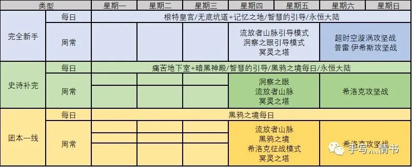 总结:最后就让我们来看一看对不同阶层玩家的每周上班表推荐吧!