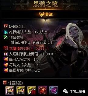 黑鸦之境日常也是每天都需要参与的新2+2副本,有几率获得大材料恐怖之瞳,通关翻牌也会获得史诗装备。