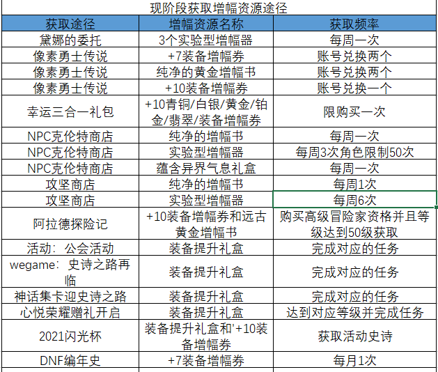 注意:黛娜的委托和NPC克伦特商店的增幅资源每周四就会刷新,小伙伴们一定要记得领取哦,还有史诗之路的增幅变换功能小伙伴们也可以去尝试一下,使用增幅5以下的装备尝试基本会赚,而增幅到7以上的装备则不建议再变换了。