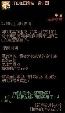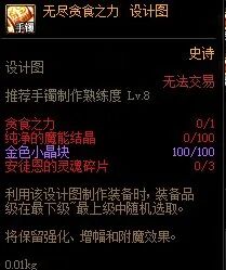仅上述情况的装备值得考虑铭刻至100级装备。至于如何操作,下面细说。不论什么装备,最终目标都是升级至95级史诗然后铭刻至100级装备。越是低级的装备,升级至95的过程需要花费的周期和疲劳值就越多,这里需要玩家自行斟酌和权衡时间金钱成本。85级首饰:巨魂首饰->贪食首饰->无尽贪食首饰->黑洞湮灭首饰->江山如画首饰