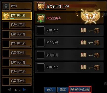 然后把称号放入称号展示栏,点击右下的替换称号动画,选择想展示的称号即可