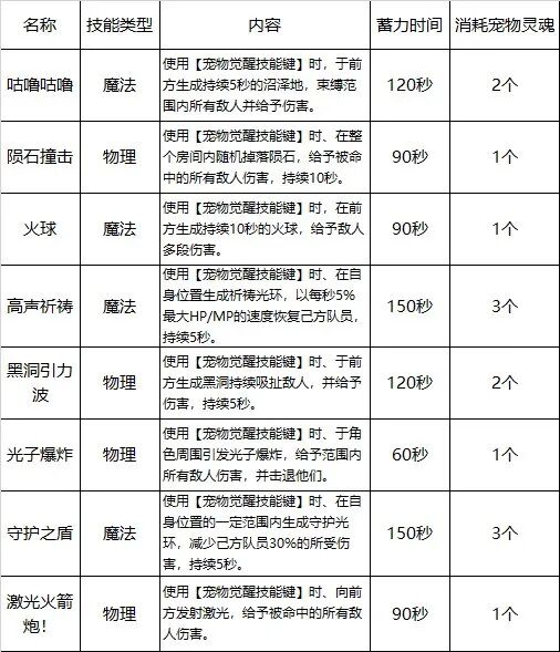 宠物觉醒技能相当于之前国服特色宠物的终结技能,技能施放时消耗宠物灵魂。