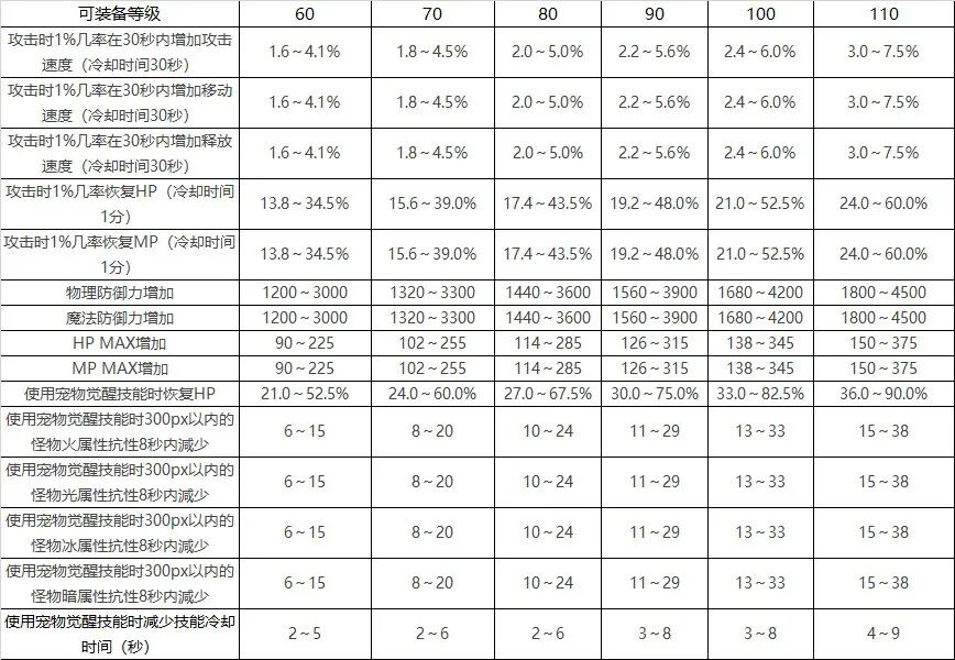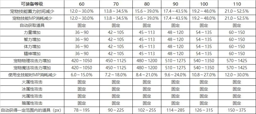 - 60~最高等级副本可以获得装备等级为60~110的宠物装备。