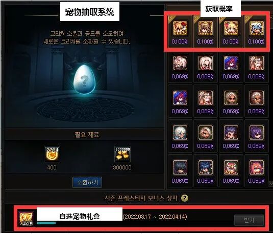 韩服全新的宠物体系,由于国服的国服特色,应该会进行本土化的改版,直接照搬韩服可能性不大。这是宠物系统自从推出后的首次大幅改版,基本采用了全随机的方式获取。想要获得完美宠物+完美属性+完美技能需要耗费的精力财力十分惊人。