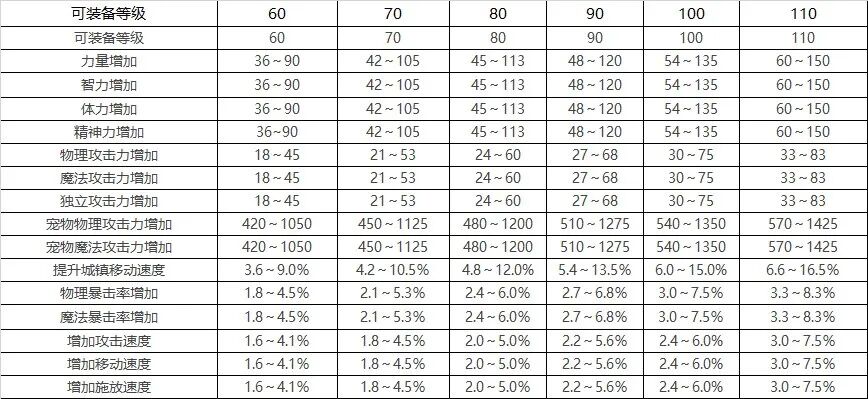 - 1~60级副本可以获得装备等级为10~50的宠物装备。