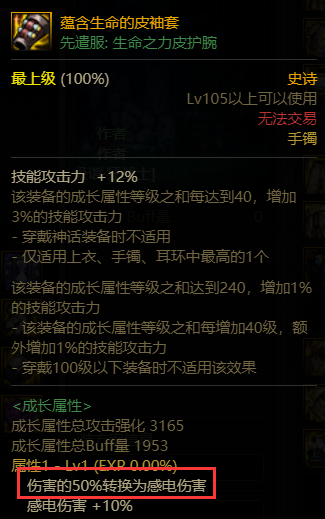 核心装备“蕴含生命的皮袖套”属性1将小伙伴输出的50%转化为了感电伤害,此时搭配其他提升感电伤害的装备,这样既能快速削减怪物韧性,同时极大提升输出能力,对于削韧能力较差的职业来说这套非常合适。