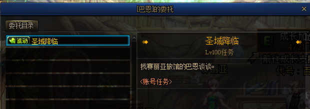 5月26日版本更新后,会开放110级预热副本 “圣域边界”区域。在完成Lv100主线任务“与黑色大地一起消失之物”后,可以在赛丽亚房间里的NPC巴恩处接到新的活动任务(如截图所示),完成后,在切斯特小镇地区开启新区域。