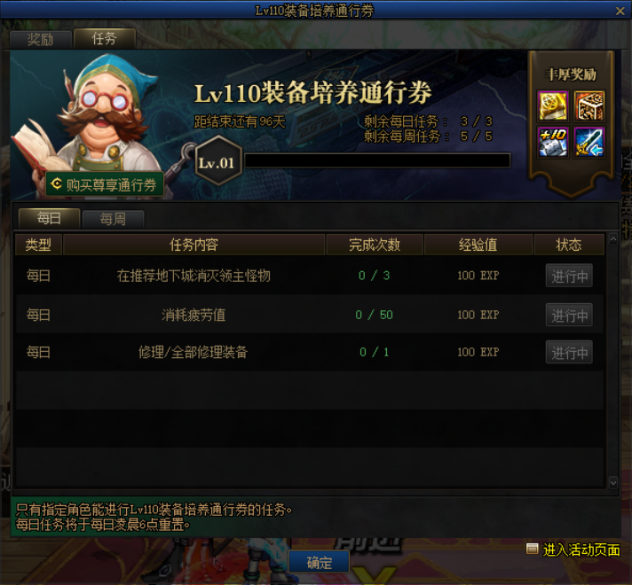 三:Lv110装备培养通行证