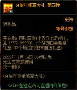 一:14周年登录畅享大礼