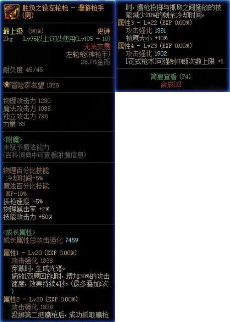 随着0526版本圣域前兆的更新,110版本也离国服越来越近了在110版本中每个职业的武器将会分为两种,一种是数值加成固定的制式武器(吞噬根源系列),另一种则是改动本职业玩法的CP武器(胜负之役),选择哪种武器将会成为110版本每个冒险家需要面对的问题本期职业:漫游枪手(男)