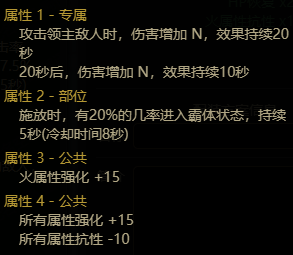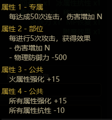 【装备种类词条】根据装备种类不同(武器、防具、首饰、特殊装备),相同种类装备共享的词条池;