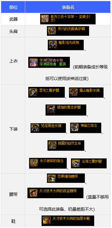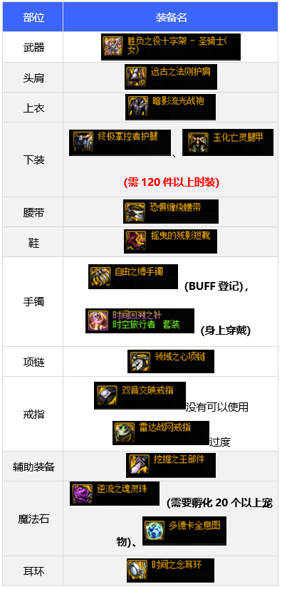 此搭配为CD套,部分装备可根据自身实际CD时间进行调整,完美状态下,可以达到全程蛋壳、跑鞋、圣洁之翅膀、唱歌、基本没CD的小回血以及非常短的太阳CD,奶量与最高奶量搭配相差不大,国服环境下伤害溢出,个人更倾向于CD套,配合护石选择处的CD护石搭配,非常好用!