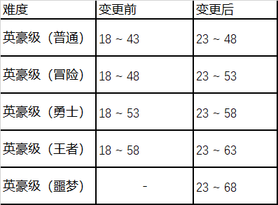 首先,我们观察到在白图勇士-王者-英豪普通,寂静城普通-冒险难度等区间,勇士们普遍存在着名望值达标但通关效率低的问题,对此,我们将在0811版本在王者-英豪普通难度间新增噩梦级难度,以便让玩家的成长体验更加平滑;同时对副本难度进行调整,以帮助对应勇士们以更高的成长效率度过这一区间: