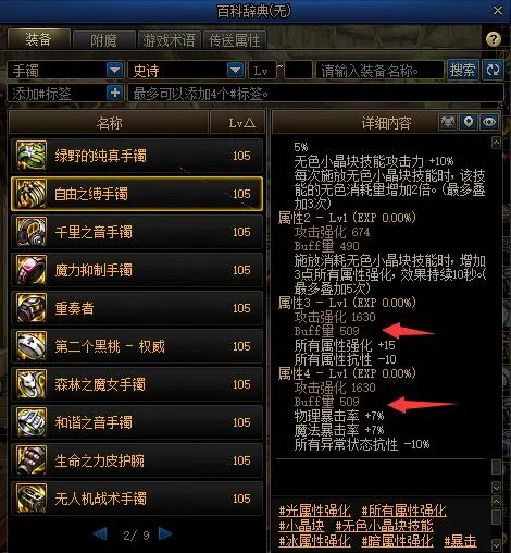 目前版本游戏内对于自定义的所有词条的信息查询,只能靠百科词典。但这个系统做的实在过烂,以至于玩家们完全无法理解每一个词条各自的基础buff量是多少。一个途径是通过拍卖寻找1级词条的自定义,来探究这部分基础数据。如下图中的【光属性抗性+10】这条词条,基础攻击强化为1186,buff量是494。一个个去找实在麻烦,针对这个问题,无名空岛上已经整理了所有的词条的基础属性,可供查询。本文的数据也来源于此。