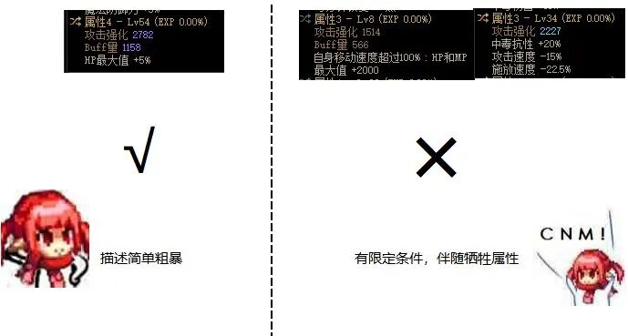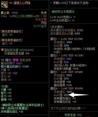 防具系列防具部位按自定义易获取的buff基础为2000计,有追求的可以达到2011这一档作为一个比较容易达成的条件。摆烂人50级以内推荐基础量高于32以上考虑,用心奶50级以上推荐基础量高于24以上考虑。头肩部位,最强的灵巧支配者护肩是1996,负面是不断掉大量的HP。次一级的天才面罩为1968,负面是不断无意义地吃灵魂,而且基础差距也被易于获取的自定义拉开到了40以上。CD流考虑的远古法则头肩提供了50%的CD回复速度,基础buff量为1948。如果以1996来看,最容易获取的自定义并不容易轻松换下,如果考虑到避免掉血负面,灵巧肩也是寂静城魔渊漫步者专属史诗这一点获取较贵的因素,那自定义史诗直接更换即可。更换推荐度:★★★上衣部位,最强的暗影流光战袍是1958,还附带破韧后提供诅咒异常、持续作战下的20%CD回复,功能性碾压同数值的灼烧特效上衣,无负面。它和自定义的平均差距达到了40~50点以上,从buff量的角度和成长经验去考虑,是必换的。如果还需要稻草人的其他功能,则见仁见智。更换推荐度:★★★腰带部位,最强的恐惧缠绕腰带是1986,负面为所有技能高额经济消耗。它和自定义的平均差距达到了15~25点,从buff量的角度和成长经验去考虑,可以认为没有特别换的必要。但不换的理由是认为喂养自定义的成本较高,而无色腰带的负面同样也是成本,因此这部分因素也被抵消了。更换推荐度:★★★★下装部位,最强的属强裤、基础裤、中毒裤是1958,负面不明显。它和自定义的平均差距达到了40~50点以上,上限差距达70多点。追求极限的玩家必换,一般玩家从buff量的角度和成长经验去考虑,也是必换的。更换推荐度:★★★★★鞋部位,最强的无畏的勇气短靴是1920,带1~25级技能+2而无负面。触发条件为命中率和移速,奶的buff自带48%以上的命中率,80%移速条件在带有加速技能的情况下极易达成。2级被动可以折抵30点智力,智力和buff量接近1:3.5的比例折算,无畏勇气鞋接近2025的buff量水准,是最高一级自定义的同部位水准,无需更换。更换推荐度:首饰系列首饰部位按自定义易获取的buff基础为2000计,有追求的可以达到2016这一档作为一个比较容易达成的条件。摆烂人50级以内推荐基础量高于32(平均提升1级)以上考虑,用心奶50级以上推荐基础量高于24(平均提升1级)以上考虑。手镯部位,最强的自由之缚手镯是1998,负面不明显。它和自定义的平均差距不足10,从buff量的角度和成长经验去考虑,一般人完全没有更换的必要。对于追求极限奶量的奶玩家而言,可以追求2021~2026的手镯,而后花费双倍资源用连连看的方式喂高。在预算充足,成本因素淡化的情况下,可以更换。更换推荐度:★项链部位,最强的领域之心项链是1978,无负面。它和自定义的平均差距在30~40左右,从buff量的角度和成长经验去考虑,摆烂的小号奶玩家没有更换的必要。对于喂到50级以上的玩家而言,值得对自定义追求一番,适合更换。对于追求极限奶量的奶玩家而言,恩特精灵项链的上限是最高的。更换推荐度:★★★戒指部位,最强的无尽的痛苦之戒是1996,负面为持续弱化自己HP上限。和自定义平均差距不足10,从经验成长的角度会比绝大部分自定义史诗有优势或者弥补了不足。次一级的血色结晶戒指为1973,无负面,被易于获取的自定义拉开到了30~40。CD流考虑的双音交映戒指提供了30%的CD回复速度,保护罩,28%的移速,基础buff量为1920。它和自定义的平均差距在80左右。从buff量的角度和成长经验去考虑,无尽戒指可以不换。但如果在长线的高压作战中,无尽的痛苦之戒肯定不是什么好的选择。更换推荐度:★★★特殊系列特殊部位按自定义易获取的buff基础为2011计,有追求的可以达到2021这一档作为一个比较容易达成的条件。摆烂人50级以内推荐基础量高于32(平均提升1级)以上考虑,用心奶50级以上推荐基础量高于24(平均提升1级)以上考虑。左槽部位,最强的四大属强左槽是1963,无负面且因为3,4属性通用,喂养效率高于一般史诗,连连看要求低。它和自定义的平均差距在50~60,从buff量的角度和成长经验去考虑,高级的情况下同水平自定义左槽能比属强左槽降低10级左右的要求,这个优势已经很大了。低等级的摆烂情况下,属强左槽可以很容易属性3,4喂到50级以上凑名望到线,有快速成长的优势,其他史诗难以做到。更换推荐度:★★★★右槽部位,最强的多德卡全息图是1953,负面为挨打眩晕。它和自定义的平均差距在60~70,不管是避开负面,还是从buff量的角度和成长经验去考虑,自定义都是必换的。更换推荐度:★★★★★耳环部位,最强的时间之念耳环是1612,但是附带了150的智力体力,不便之处为打怪触发30%的面板部分。它的水准已经超出了自定义的上限。就是要求附魔必须比较优秀,宝珠至少是125这个级别以上的。不过一般如果耳环附魔也不太愿意打到这个级别,也不怎么会考虑换自定义了。更换推荐度: