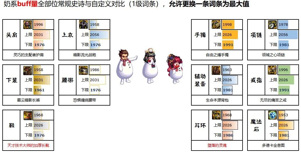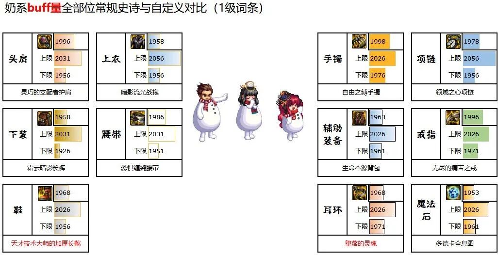 对于奶系而言,自定义史诗在多个部位的基础buff量实现全面压制常规史诗。但相应也有喂养难这个问题。在先前的自定义史诗分析贴中,我比较简单地带过了奶系的自定义史诗的情况,没有进行比较深入的分析,稍有遗憾。本帖就旨在从各个角度,更为全面、深入的剖析奶系自定义史诗。